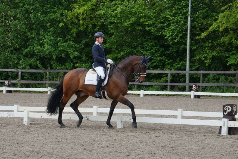 “Voor de eerste keer ben ik best wel tevreden. Het is in een nieuwe klasse altijd even aftasten hoe het gaat, maar hij liet nagenoeg foutloze proeven zien. Er zijn altijd nog wel wat dingetjes die strakker kunnen, maar daar oefenen we thuis op. Hij kan heel erg goed stappen, maar kreeg ook hoge punten voor de appuyementen, wissels en de middendraf. Hij heeft veel balans in de galop en voor een aantal onderdelen kregen we achten. De jury vond hem een fijn bewegend paard met een mooi voorkomen, dat kan ik alleen maar beamen”, lacht Jeroen. “Ik wil graag bovenin mee rijden en ik had dit debuut al langer in mijn hoofd. Hij had al veel eerder mee gekund, maar ik wilde het nog meer bevestigen. Hij liet zich goed bewerken en deed onwijs zijn best. We moeten nu kilometers maken zodat we het steeds strakker kunnen afwerken.”