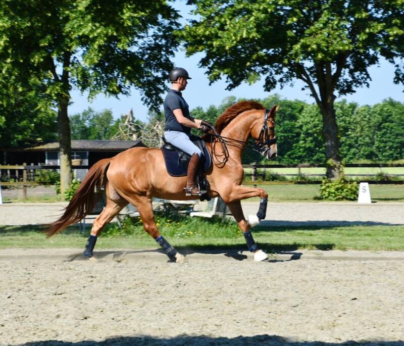 Het paard is gefokt door Joop van Uytert en een halfbroer van de KWPN-hengst In Style. “Ik heb hem gedeeld eigendom met Joop vanaf zijn derde. Het is heel fijn dat iemand achter je staat. Hij zal een keer verkocht worden, maar tot die tijd geniet ik zelf van hem”, vertelt Jeroen die zijn stallen gevuld heeft. “Van een klant rij ik de merrie Paardenwagentje Grand Dame en ik zal haar binnenkort in de Lichte Tour starten. De eigenaresse heeft een blessure gehad en zodoende ben ik het paard gaan rijden. De eigenaresse rijdt ook wedstrijden met de merrie en ik train haar verder door. Zelf heb ik nog een achtjarige vos Kir Royal (v. Firestone) en die heb ik twee keer Z1 en één keer Z2 gestart. Ik had niet gedacht dat hij het zo fijn zou gaan doen, in de ring geeft hij iets extra’s. Samen met Marijn heb ik nog een zesjarige hengst van Franziskus en nog twee zesjarigen in training. Ik train ze rustig door om mee te nemen op de basiswedstrijden”, vertelt de ruiter.
